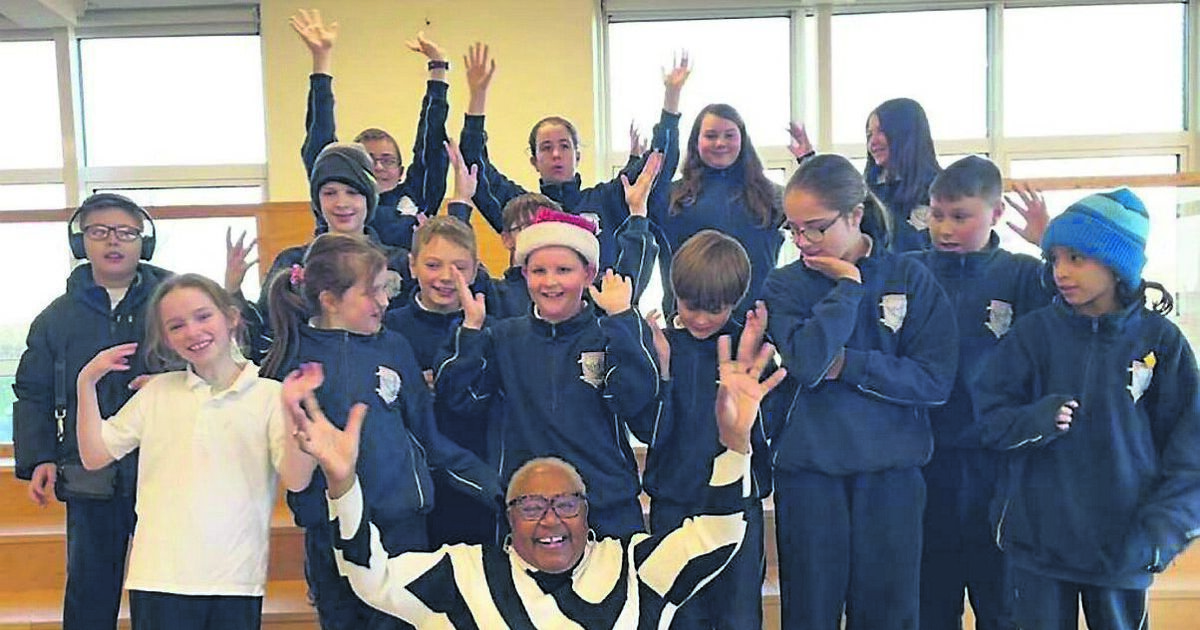 Singer Karen Underwood is pictured with some of the pupils from St Killian's ahead of their Cork Opera House debut.
