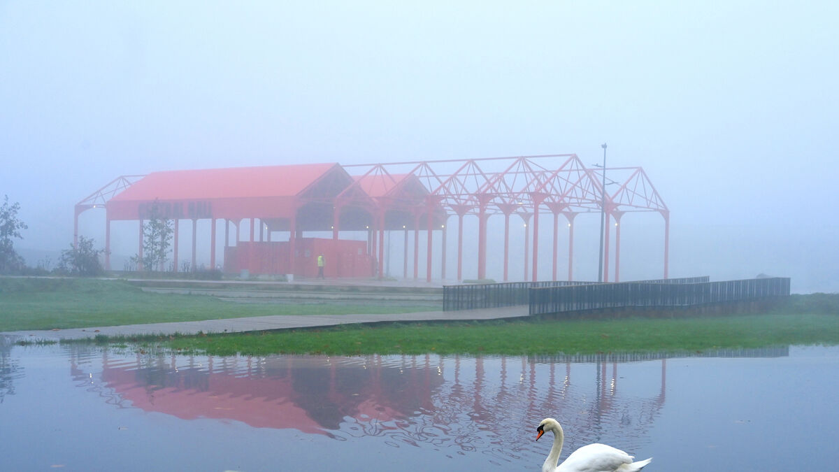 A swan in a foggy morning scene at Marina Park, Ballintemple, Cork City with Pairc Ui Chaoimh hidden in the dense fog. Pic: Larry Cummins