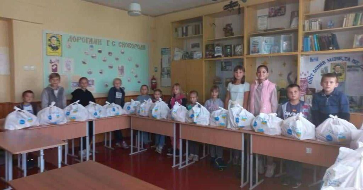 Novy Merchik schoolchildren in Kharkiv Oblast with supplies from Cork charity The Greater Chernobyl Cause who recently donated aid to the facility as part of a major relief effort