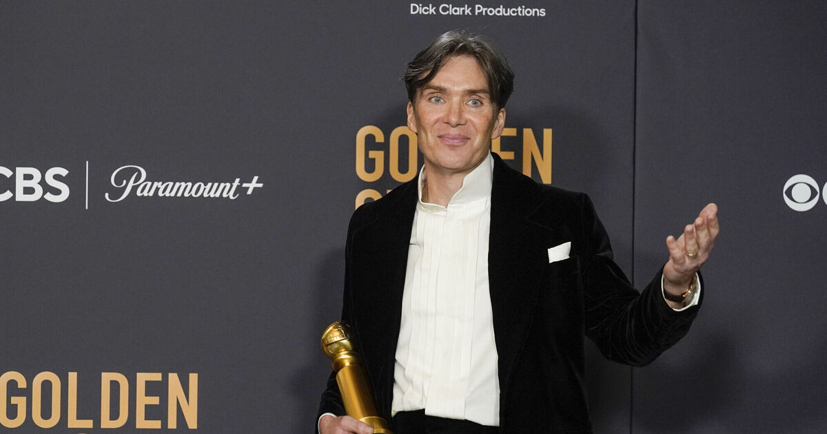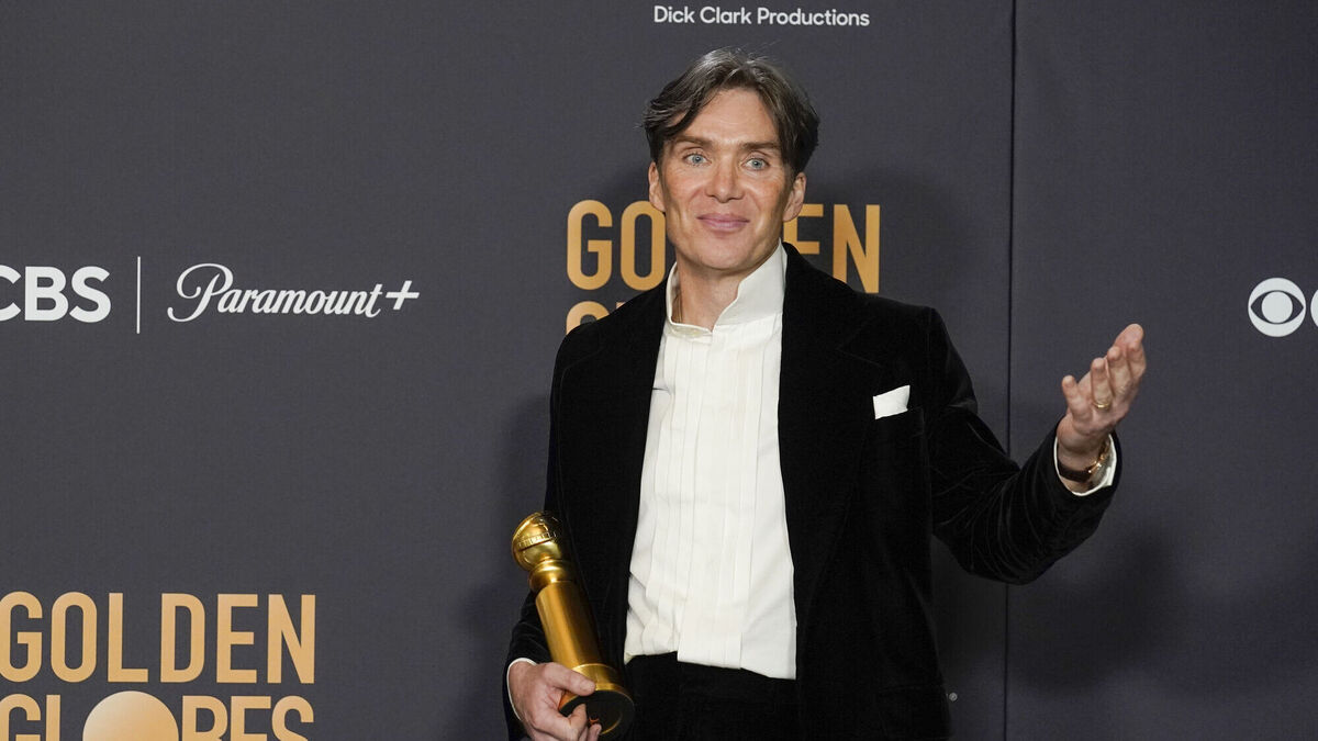 Cillian Murphy poses in the press room with the award for best performance by an actor in a motion picture, drama for "Oppenheimer" at the 81st Golden Globe Awards 2024, at the Beverly Hilton in Beverly Hills, Calif. (AP Photo/Chris Pizzello)