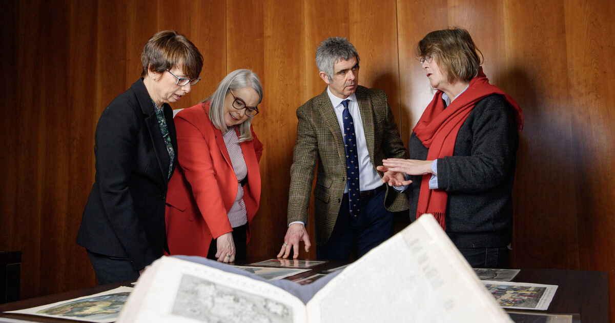 University librarian Coral Black, director of the National Library, Ireland, Dr Audrey Whitty; UCC library head of collections, Crónán Ó Doibhlin and Charlotte Otway-Norwood daughter of Andrew Bonar Law, with items from the Bonar Law Collection at UCC. Picture: Daragh Mc Sweeney/Provision.