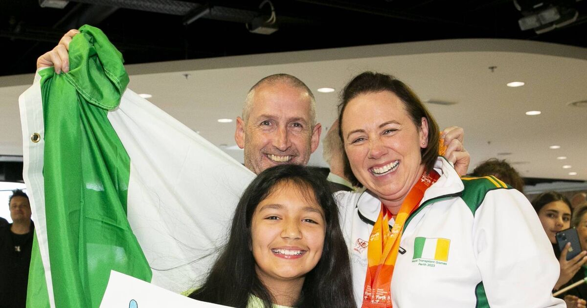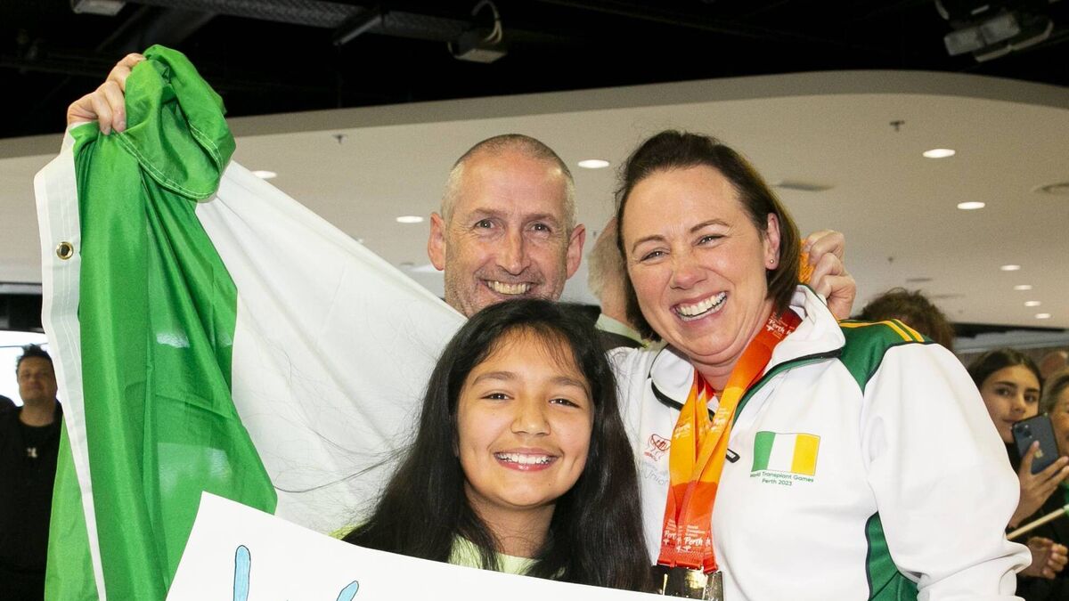 Athlete Mairead O’Mahony, pictured with her husband Tony and daughter Isabella, who won five medals at the 2023 World Transplant Games is among the nominees for the 2023 Blarney and District Person of the Year award. Picture: Gareth Chaney
