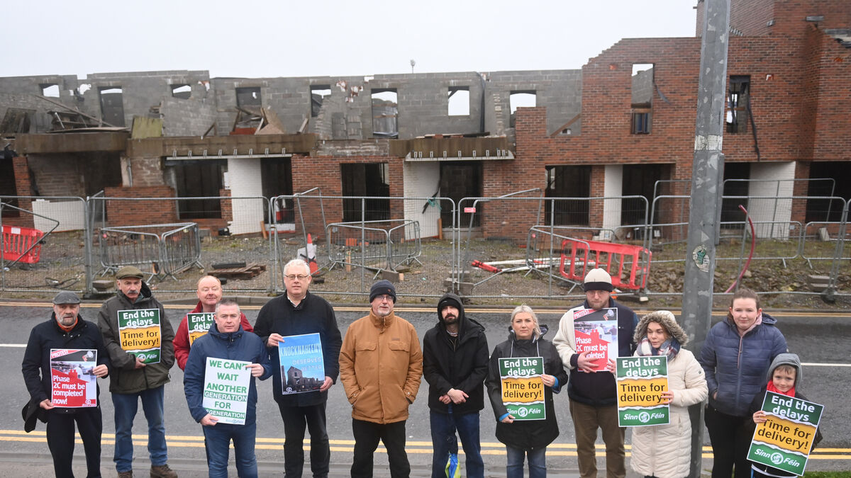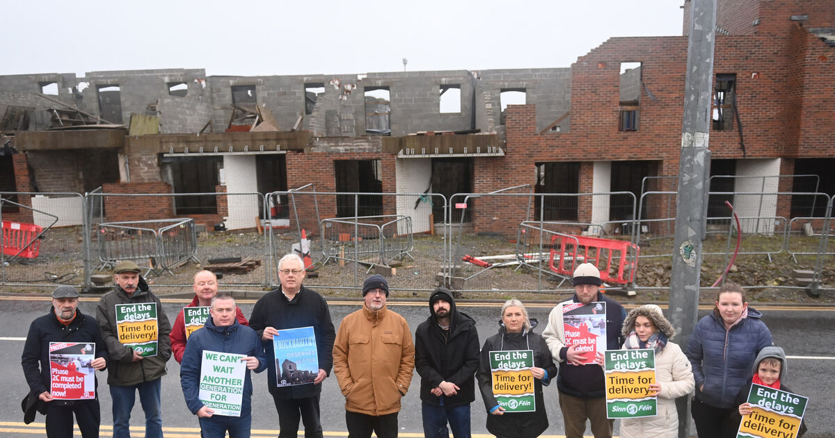 The protest was attended by Sinn Féin and Socialist Party representatives who raised concerns both about the delay in the delivery of the homes and the condition the unfinished houses have been left in, some of which are exposed to the elements.