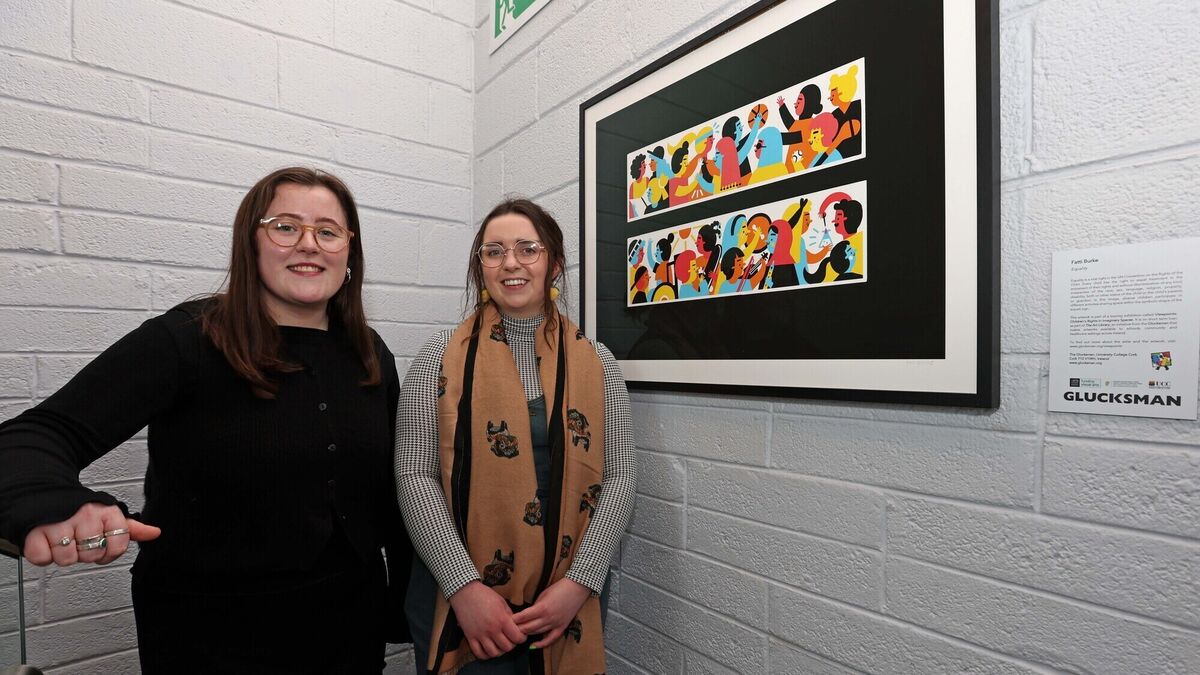 Meadhbh Healy, Glucksman Gallery UCC and Nicola Sheehan, Art Teacher Mayfield Community Training Centre, alongside art from the Glucksman Gallery UCC. Picture: Jim Coughlan.