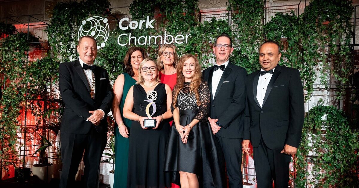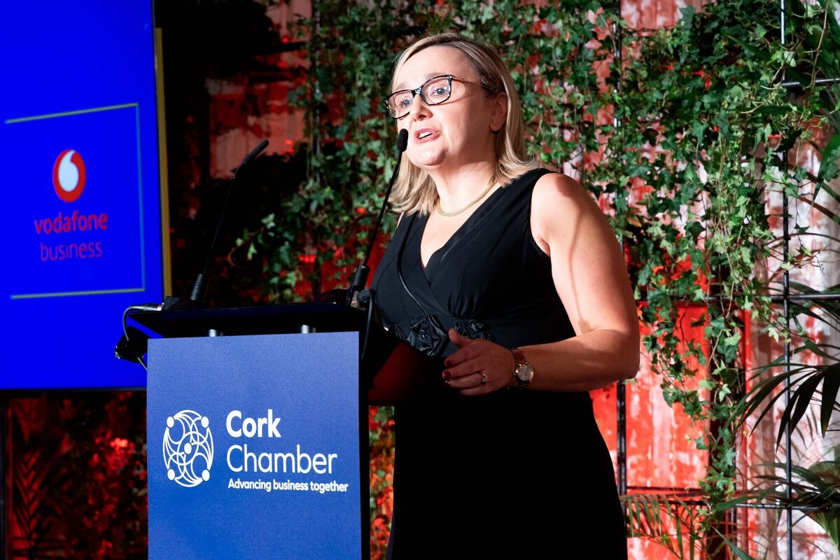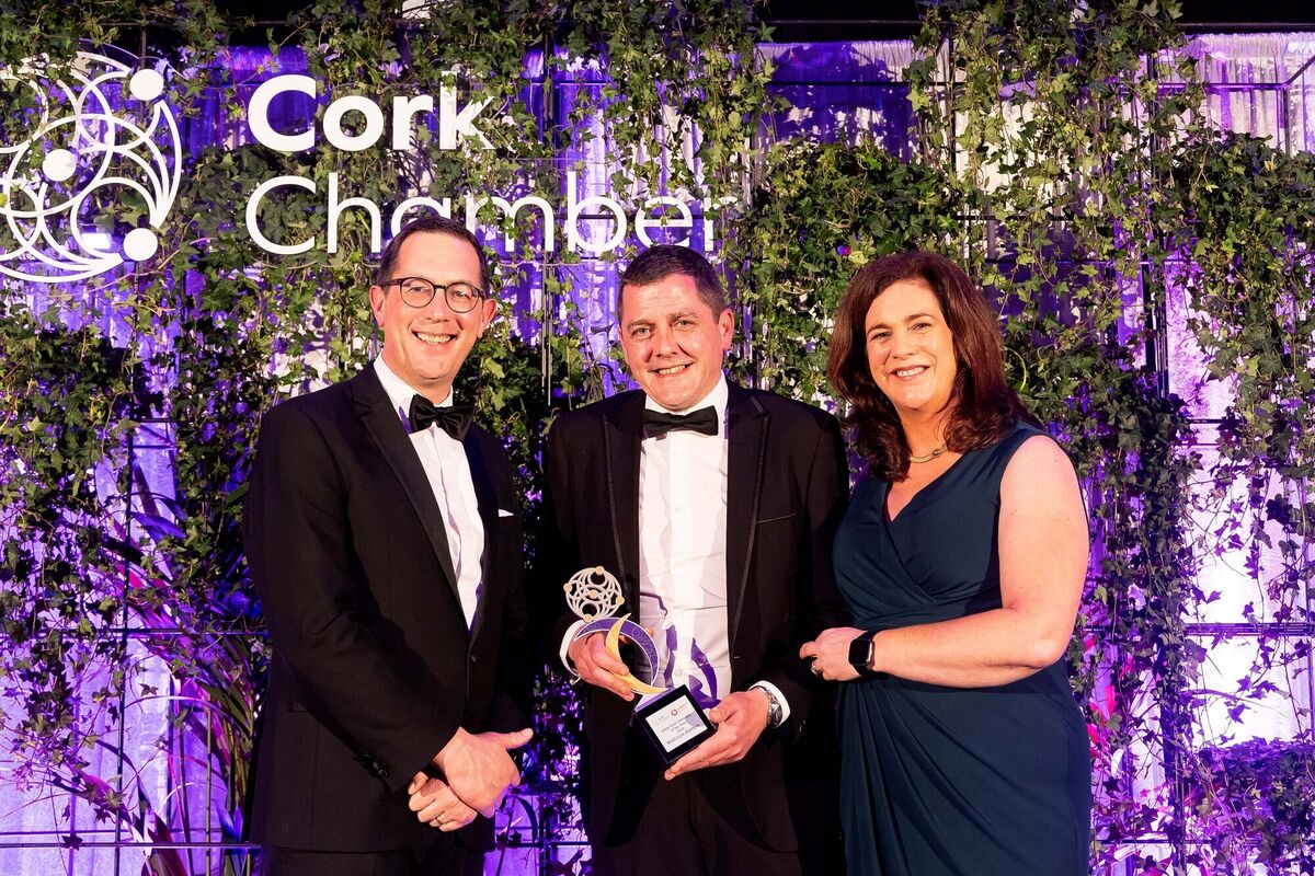 1. John O’Connell, West Cork Distillers, receiving the award for Large Cork Company of the Year, from Conor Healy, CEO, Cork Chamber, and Sinead Scully, Vodafone Ireland.