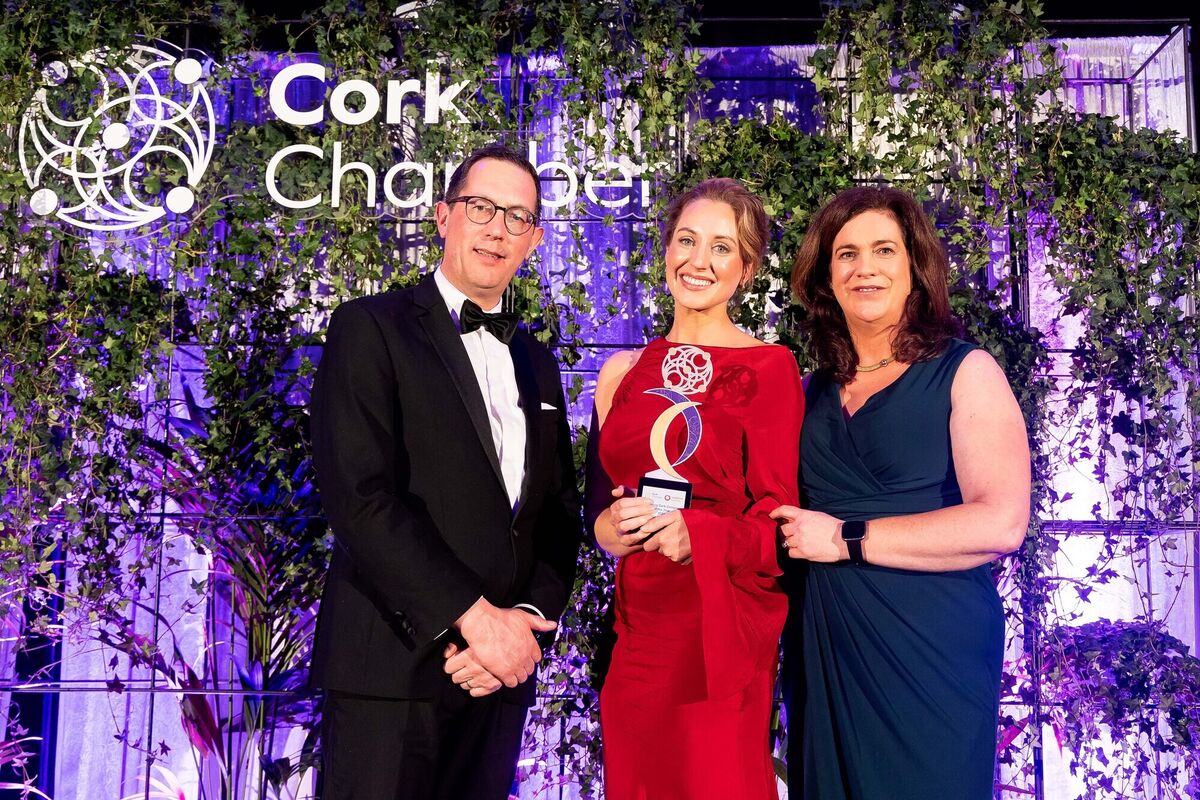 4. Lauren Duggan, co-founder, Riley, receiving the award for Emerging Cork Company of The Year from Conor Healy and Sinead Scully.