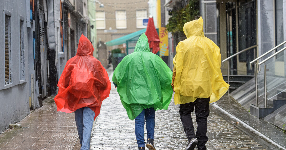 Dressed for the rain on the South Mall, Cork were Edzel, Andrea and Aurora Carrillos. The percentage of monthly rainfall values ranged from 87% (monthly rainfall total of 83mm) at Finner, in Donegal, to 222% (monthly rainfall total of 166.1mm) at Cork’s Roche’s Point. Picture Dan Linehan