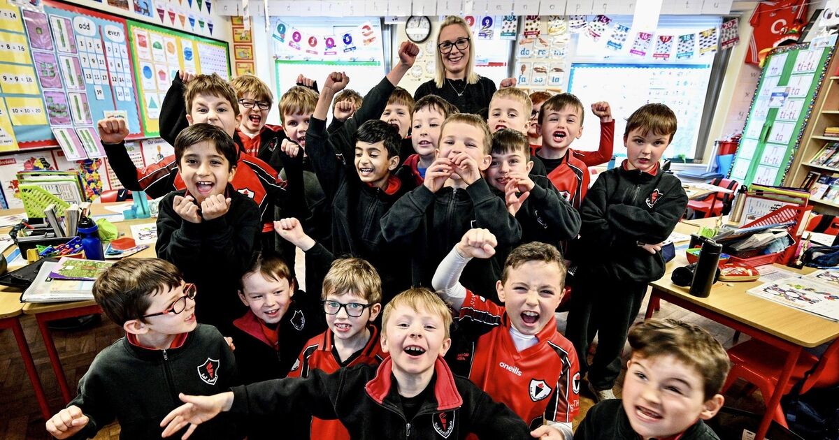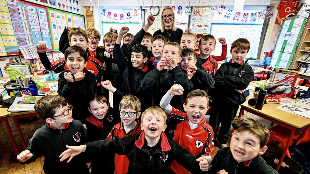 Pupils from Louise Barrett’s first class in St Anthony’s boys primary school, Ballinlough, are overjoyed for past pupil, Cillian Murphy on his Oscar Win. Picture by Chani Anderson