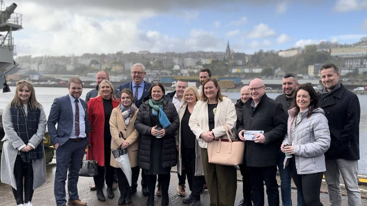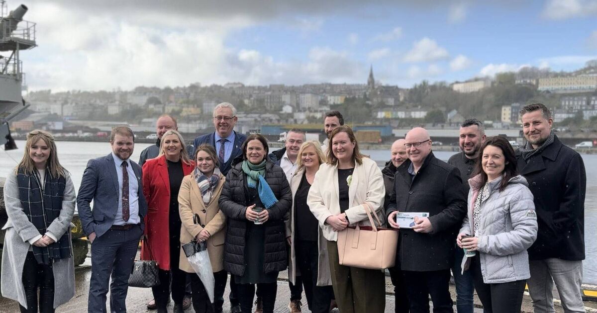 Sinn Féin leader Mary Lou McDonald pictured with some Sinn Féin local and European candidates, sitting councillors and TDs during a visit to Cork.