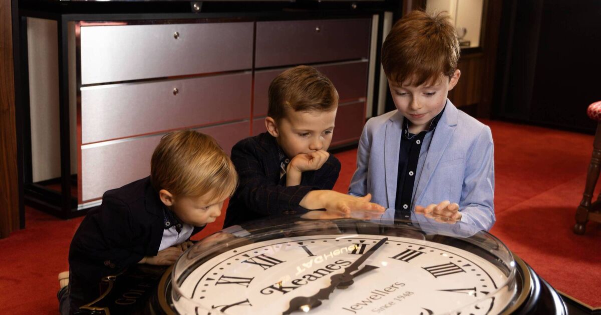 A reminder from Ger, George and Patrick Keane junior, to turn your clocks forward by one hour this weekend! Photo: Keanes Jewellers