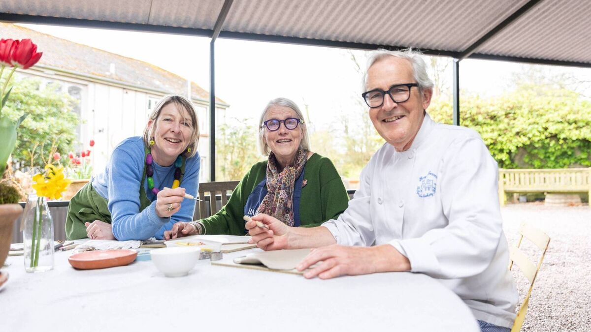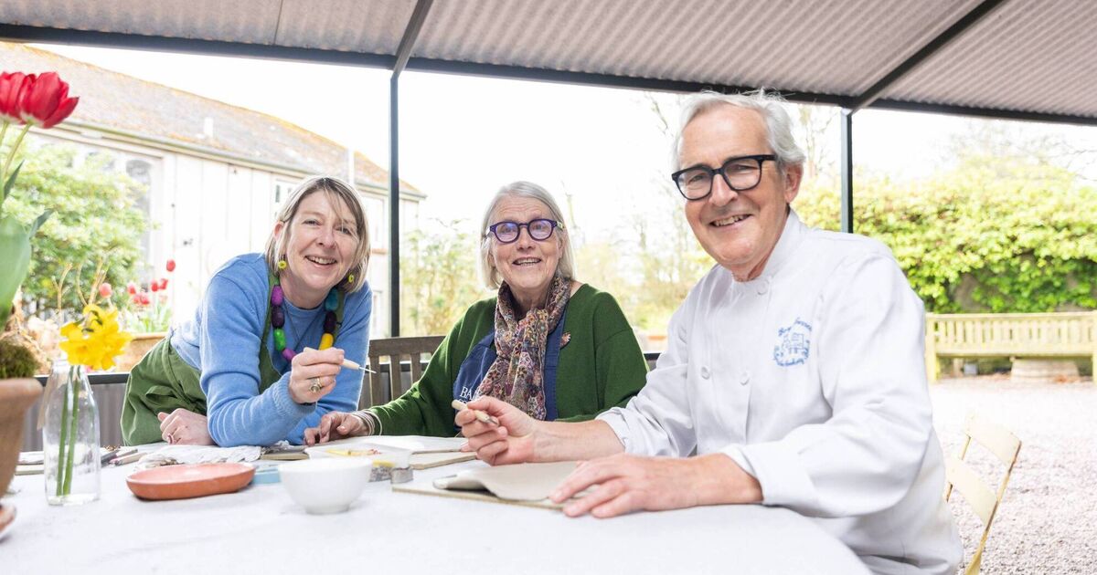 Fine Art Sculptor and ceramic artist Martha Cashman with Darina Allen and Rory O'Connell, Ballymaloe Cookery School launching Cork Empty Bowls Food Gathering for Palestine. Picture: Darragh Kane