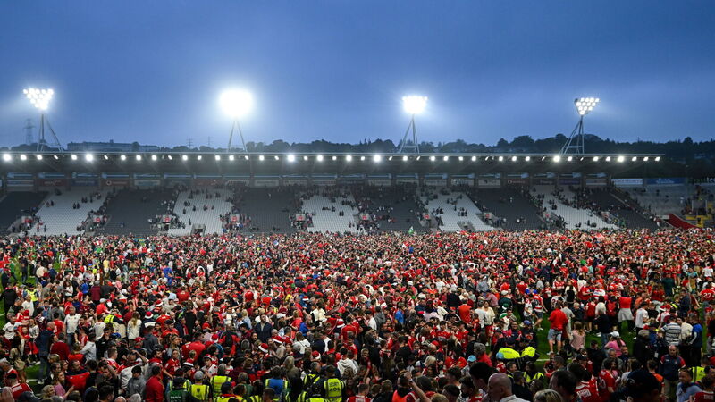 Cork supporters on the pitch after the Munster GAA Hurling Senior Championship Round 3 match between Cork and Limerick at SuperValu Páirc Ui Chaoimh in Cork. Photo by Stephen McCarthy/Sportsfile