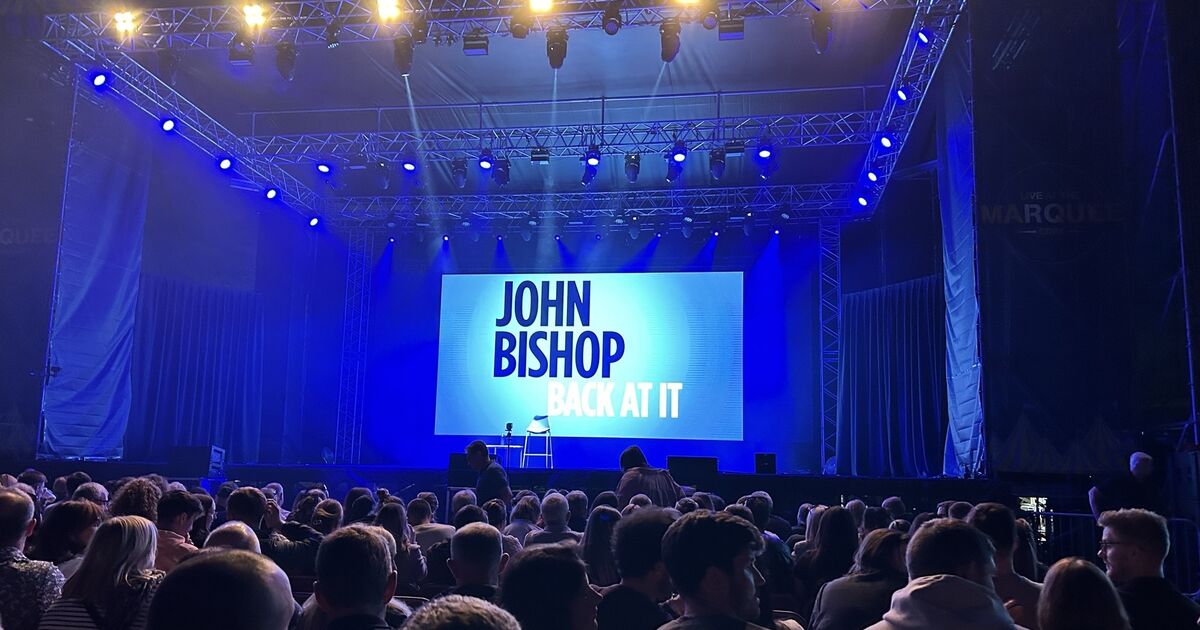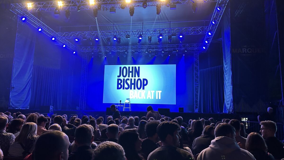 Stage setup for comedian John Bishop — ‘Back At It at ‘ for Live at the Marquee’, last Thursday. Picture: Larry Cummins.