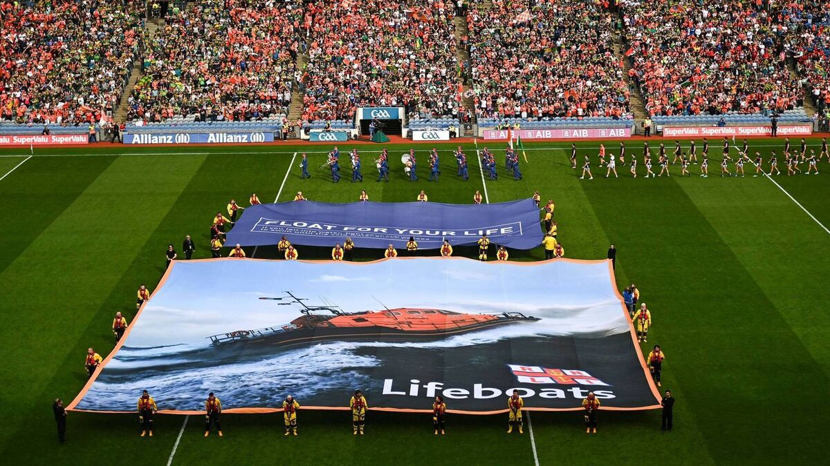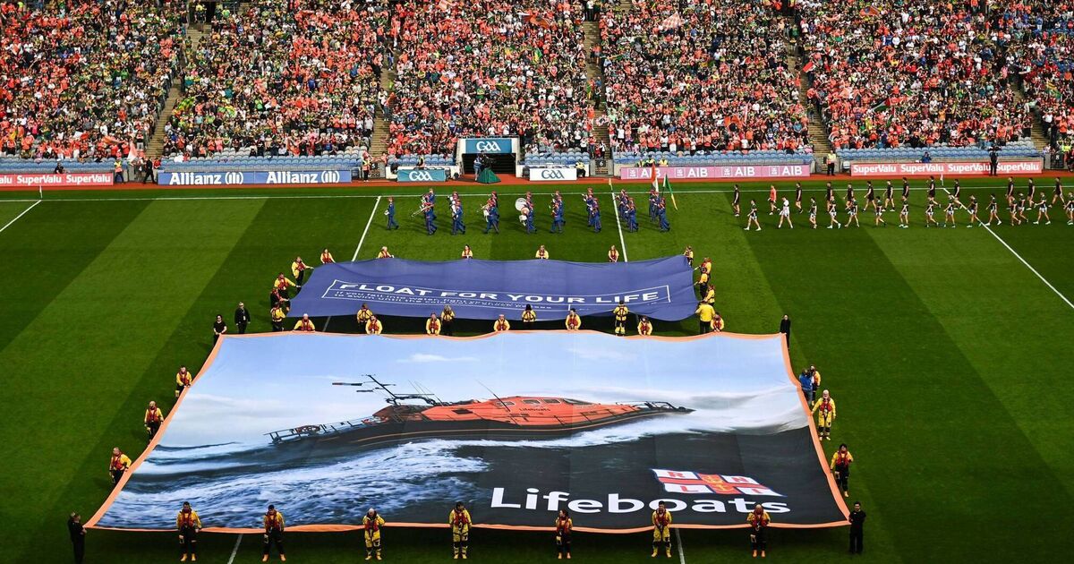 RNLI volunteers from Cork city, Kinsale and Youghal were among the representatives who were in Croke Park during Saturday’s All-Ireland senior football championship semi-final at Croke Park, to promote the charity’s water safety partnership with the GAA. Photo: Sportsfile