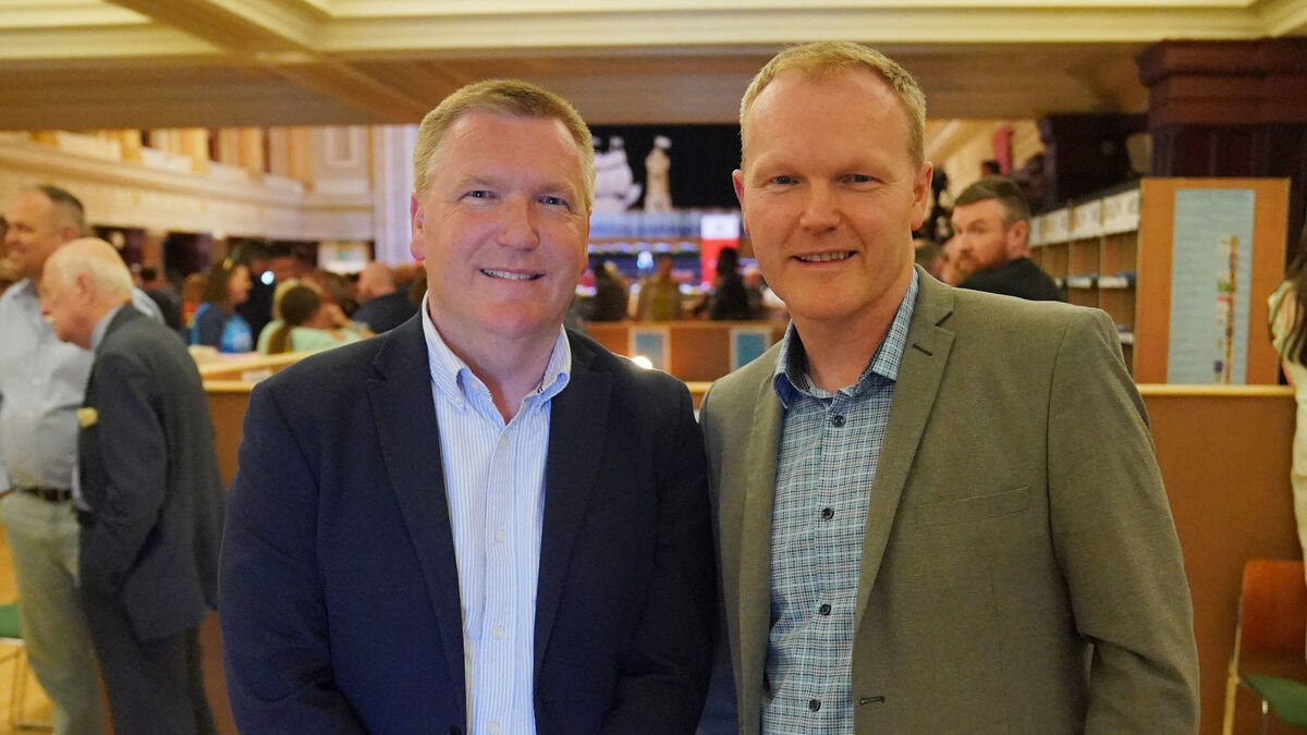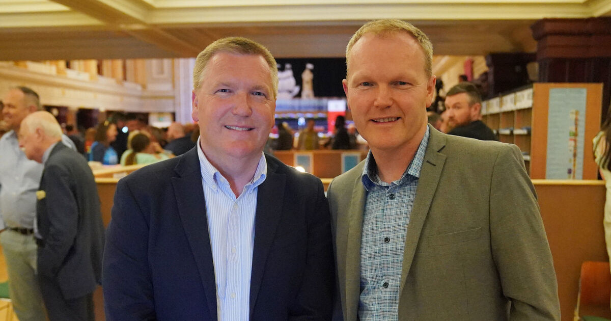 Former Finance Minister Michael McGrath (left) and his brother Councillor Seamus McGrath (right) at Cork City Hall in Cork, Ireland, during the count for the local and European back in June.