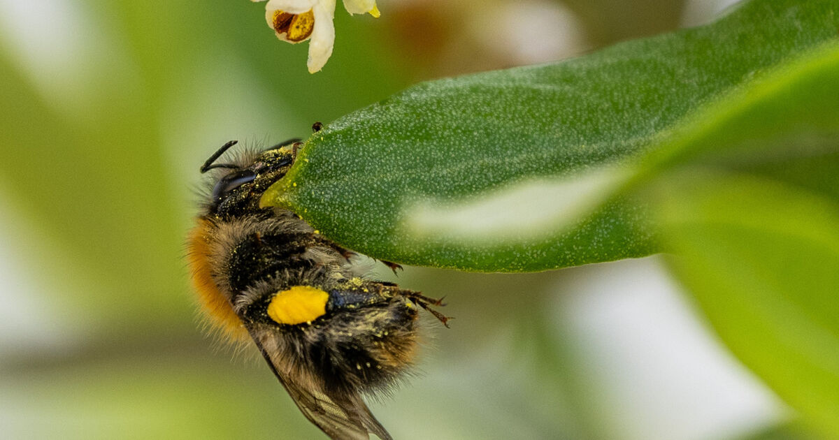 A bee already loaded with pollen, collects more from an olive tree in West Cork. Picture: Andy Gibson.