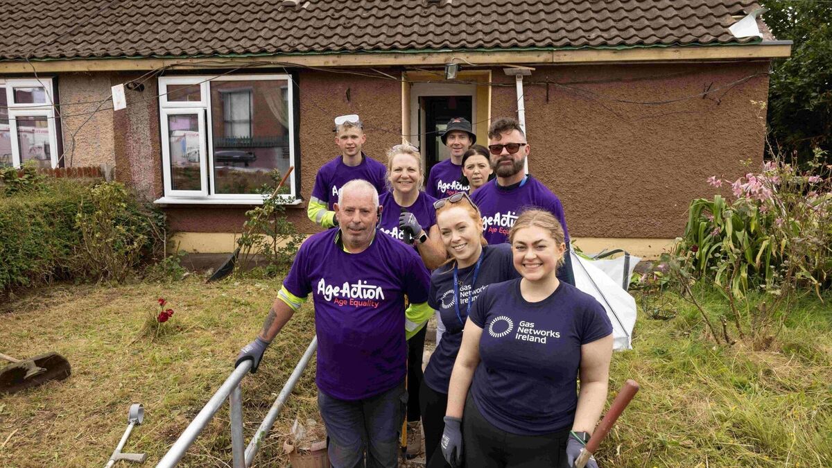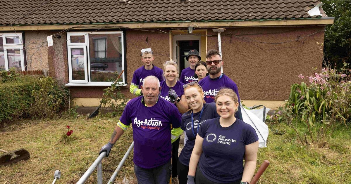 Gas Networks Ireland’s Jane Gilvarry gets the gardening underway with colleagues Úna Murphy, Kay Keane, Sharon Wall and Sinead Cullinane; with Age Action’s Luke Decaux at the Gas Networks Ireland gardening blitz in Cork
