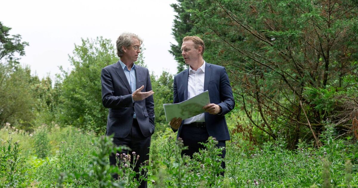 ESB chief executive Paddy Hayes talks to Land Development Agency chief executive John Coleman at the ESB’s Wilton site, which will be transferred to the LDA, with the aim of delivering 350 homes. Picture: Darragh Kane.