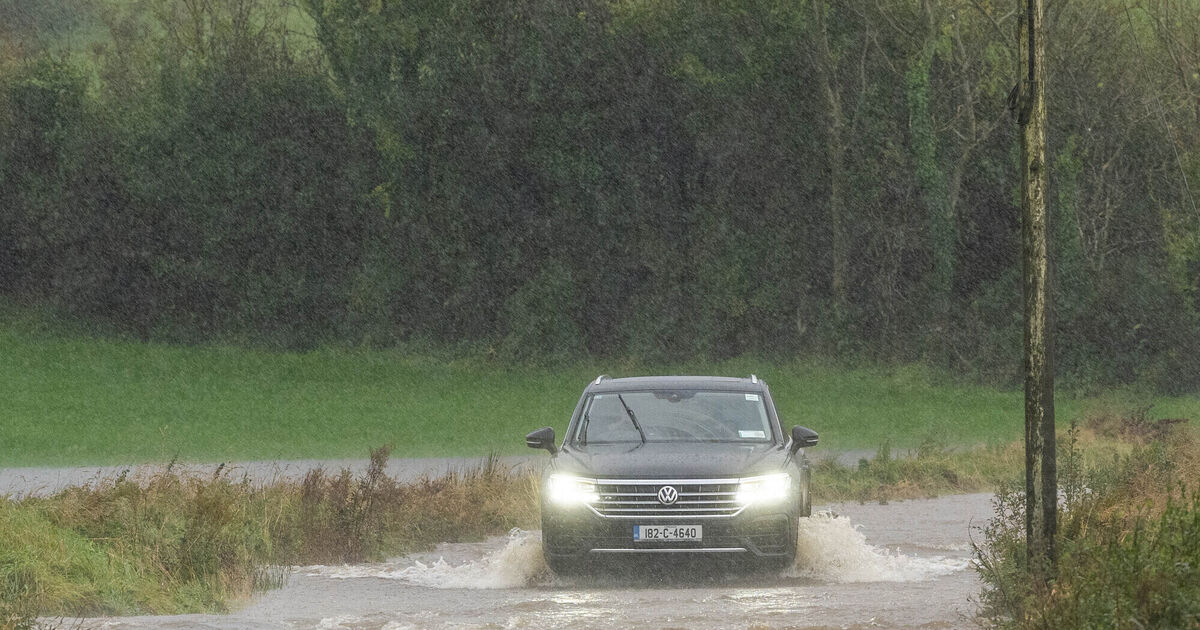 A car tries to negotiate flood waters at Litterlickey, just outside Bantry two weekends ago. Picture: Andy GIbson.