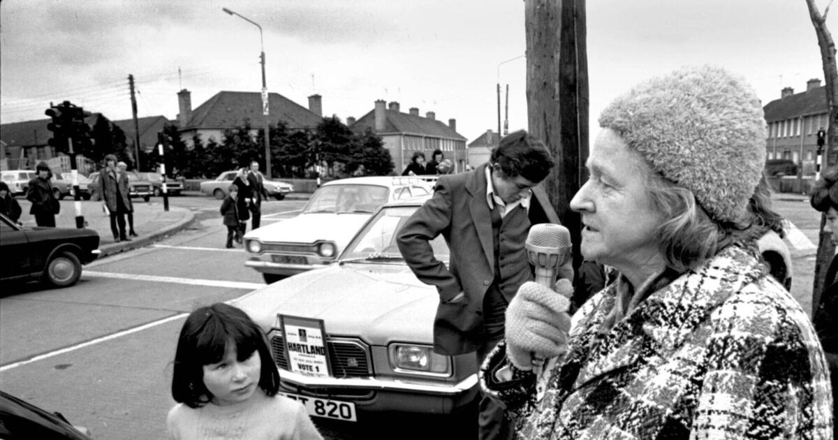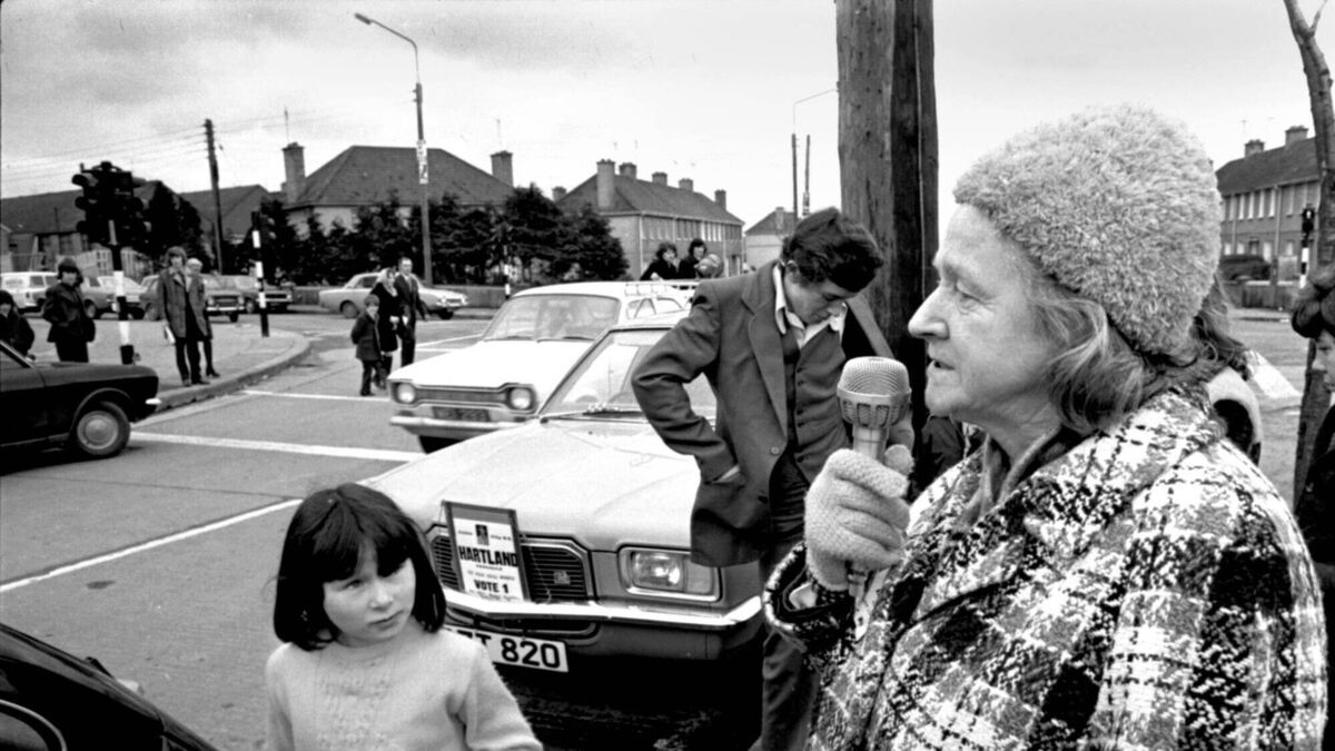 Independent candidate Veronica Hartland campaigns at Ballyphehane, Cork 18/2/1973.