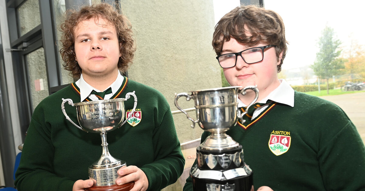 Aurelius Weber-Shevchenko, Junior Student of the Year, and Eamon Cronin, An Corn Mhic Uistin winner for love and respect of the Irish language and culture, at Ashton School annual Prize Day ceremony.