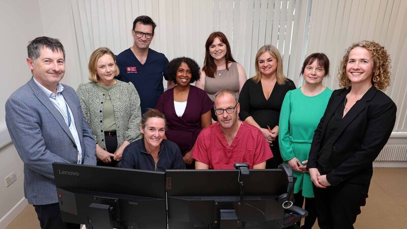 The Care team. Second back row l-r: Professor Conor Deasy, clinical director of emergency and acute care, CUH, and project manager Fiona . Middle row l-r: Cronin, ; Dr ; Mari O’Donovan, acting head of primary care, and Mary Rose Dennehy, ICT lead. Front row l-r: Ger Moloney, IT manager, CUH; Aideen O’Riordan, unscheduled care manager, CUH; Dr Mike O’Connor, consultant geriatrician; and Ann-Marie Dineen, ICT CUH.
