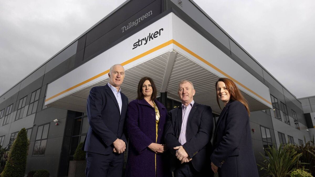 Stryker have launched a new Training Centre of Excellence at the company’s facility in Tullagreen. Pictured at the launch of the centre were (left/right); Conor Tolan, vice-president manufacturing JR, Stryker; Maureen Timlin, US mid-west territory manager, medical technologies division, IDA Ireland; Ian Corkery, Tullagreen site senior director, Stryker; and Rachel Shelly, global head of life sciences, IDA Ireland.
