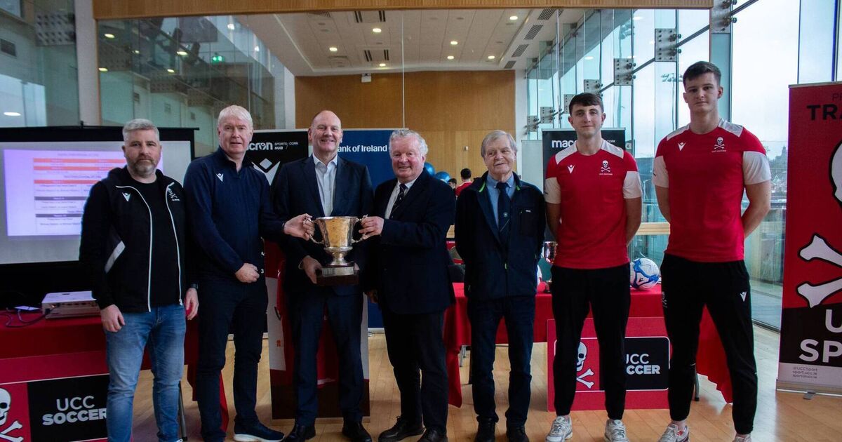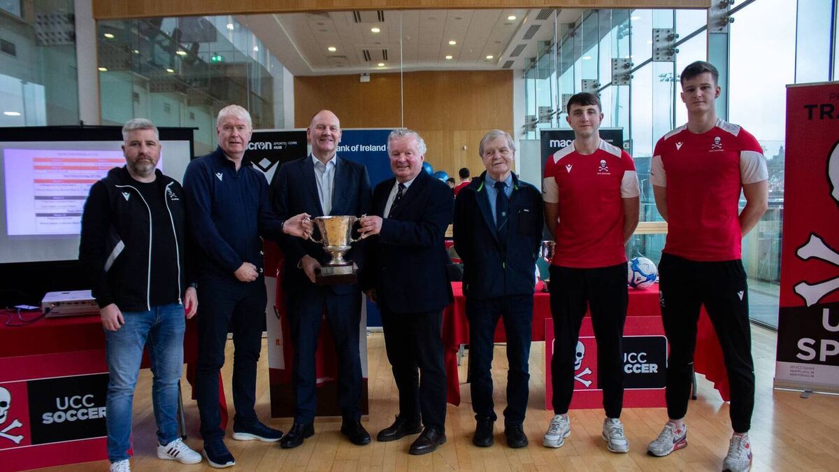 At the launch of the 2025 Collingwood Cup, in UCC, were Greg Yelverton, UCC soccer-development officer, John O’Rourke, Macron Cork, Morgan Buckley, UCC head of sport, John McCarthy, UCC Soccer and IUFU, Liam McCarthy, IUFU, Sam Morrissey, UCC Soccer, and Kevin Fitzpatrick, UCC Soccer.