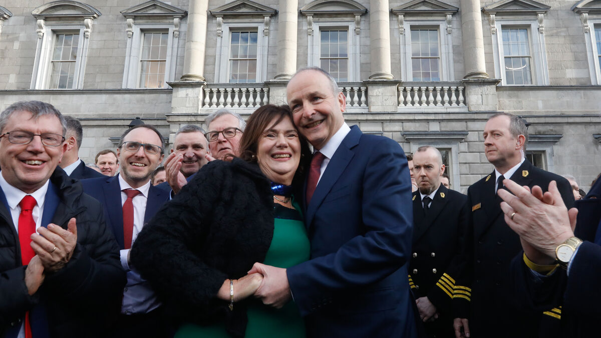 Newly nominated Taoiseach Micheál Martin with his wife Mary outside Leinster House. Photograph: Leon Farrell / © RollingNews.ie