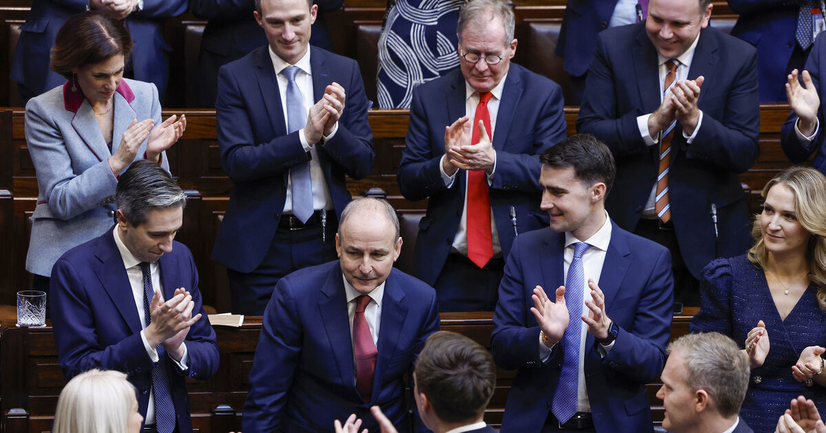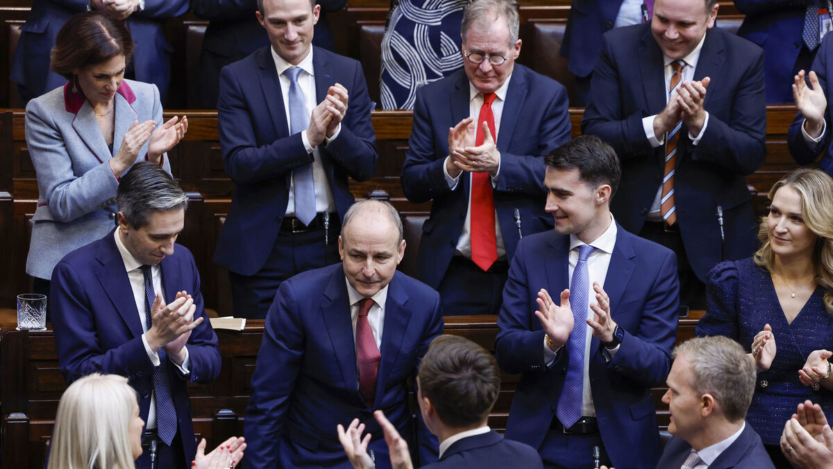 Taoiseach Micheál Martin receives a standing ovation from party and government colleagues in the 34th Dáil in Dublin after his election.