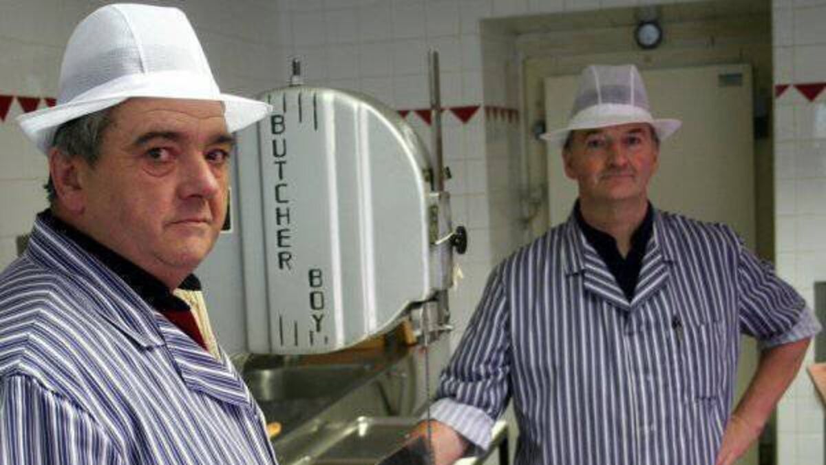 Brothers Jamesie (RIP) and Patjoe Collins, founders of Collins Bros Butchers in Dunmanway.