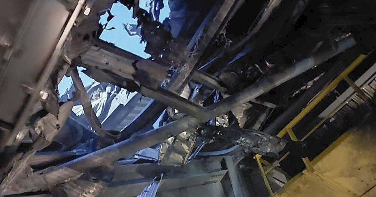 Ukrainian President Volodymyr Zelensky has claimed that a Russian drone with a high-explosive warhead hit the protective confinement shell of the Chernobyl nuclear power plant in the Kyiv region last night. Photo: Ukrainian Emergency Service via AP
