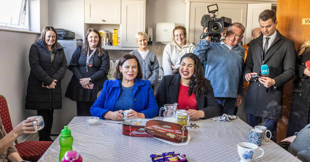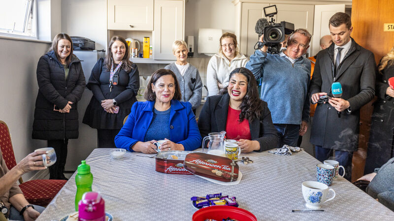 Senator Nicole Ryan, right, with Sinn Féin party leader Mary Lou McDonald in the staff room of Presentation National School, Millstreet