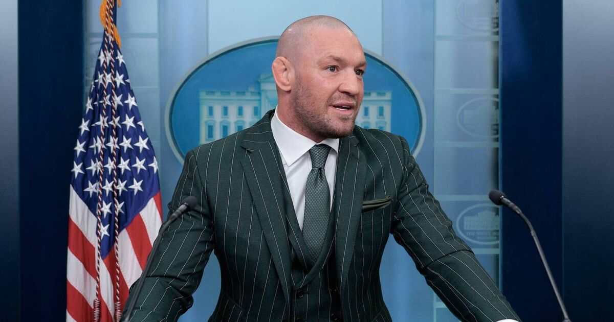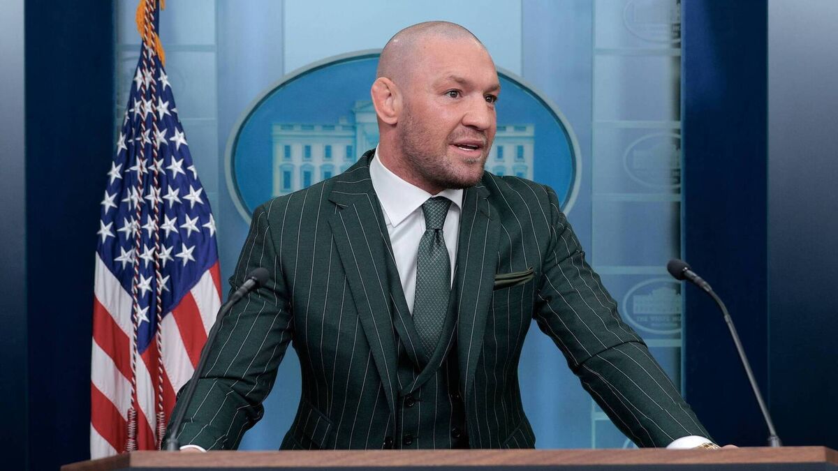 MMA fighter Conor McGregor speaks with reporters in the briefing room of the White House on St Patrick’s Day in Washington.Picture: Chip Somodevilla/Getty Images)