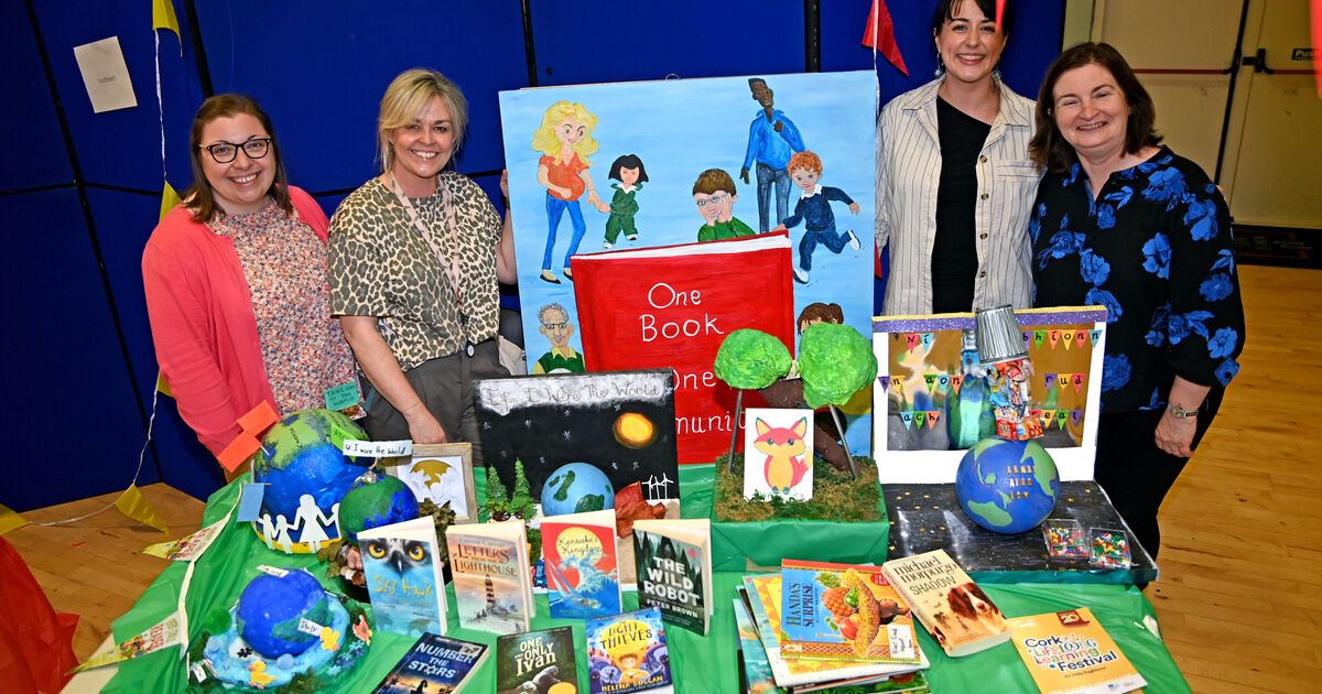 Megan Sarl, Maeve Heaphy, Muireann Kelleher, and Íde Ní Dhubháin from One Book One Community at the Mahon Community Learning Expo at the Mahon Community Centre. Picture: Eddie O’Hare