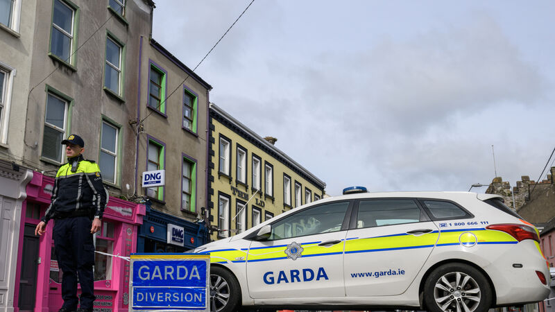 A Garda on duty on the North Main Street, Youghal, Cork which was the scene of a fatal assault. Picture Dan Linehan