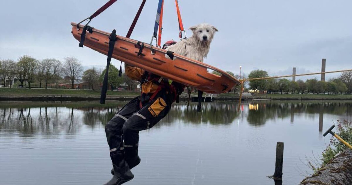 Once on scene, Cork City Fire Brigade personnel launched a water rescue, successfully lifting the dog back to shore.