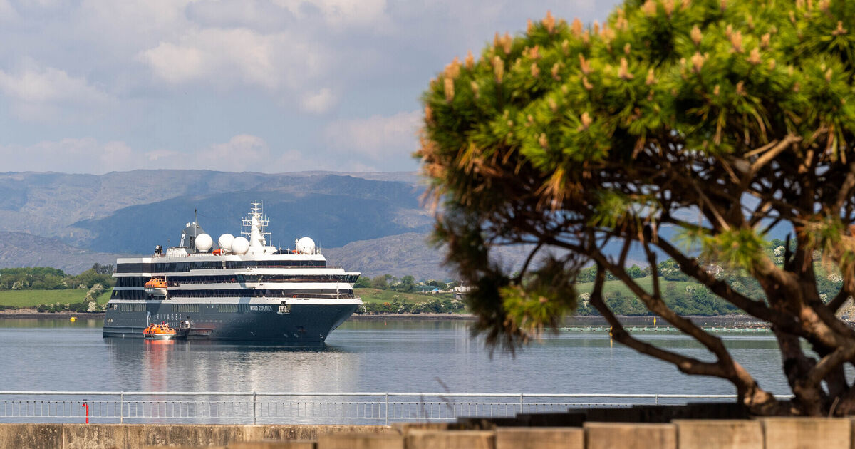 Cruise ship World Explorer moored in Bantry Bay. It is the first of 14 liners scheduled to call at Bantry Bay Port during the 2025 season. Picture: Andy Gibson.