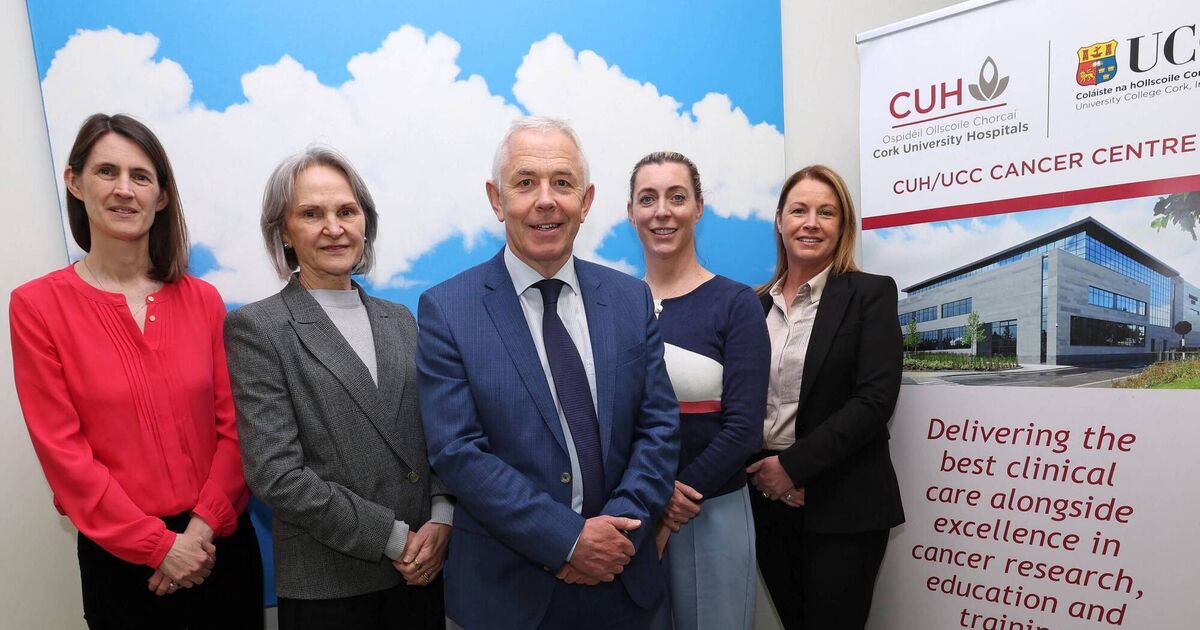CUH/UCC Cancer Centre academic director Prof Roisin Connolly; head of College of Medicine and Health at UCC and chief academic officer, HSE South West, Prof Helen Whelton; professor of obstetrics and gynaecology at CUH/UCC and acting regional executive officer HSE South West, Prof John R Higgins; CUH/UCC Cancer Centre clinical director Dr Dearbhaile Collins; and CUH interim CEO Deirdre O’Keeffe. Picture: Jim Coughlan.