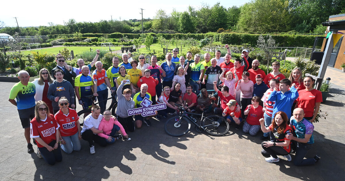 Cyclists with Down Syndrome Cork clients and staff, special guest Amy O'Connor, councillor Jack White, Minister Jerry Buttimer, KC and Ruairi O'Hagan of RED FM at the announcement of The Field of Dreams Cycle which will take place on Sunday June 8. Picture: Larry Cummins