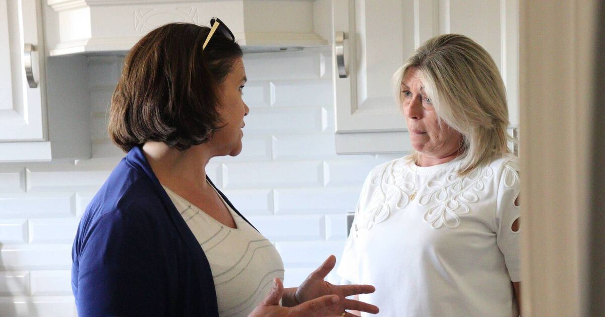Sinn Féin leader Mary Lou McDonald with Clashduv Rd resident Charlene O'Brien. Picture: Ciara Ní Dhálaigh.