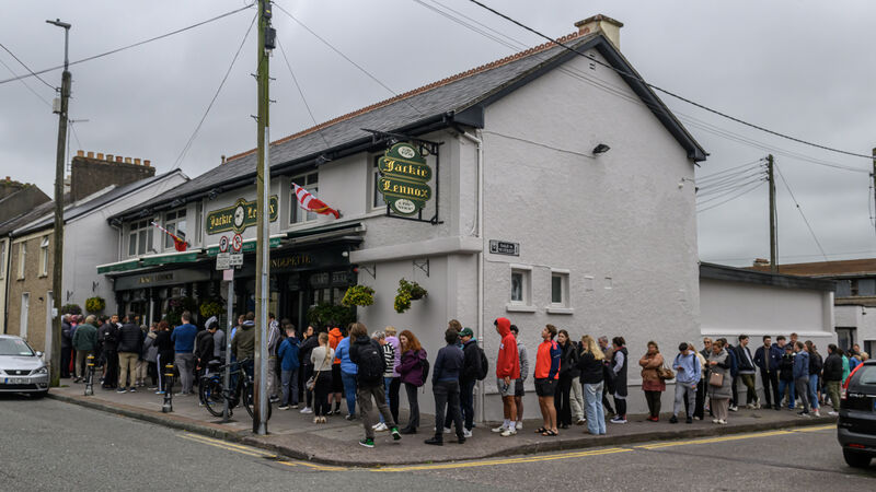 The lunch time queue outside the Jackie Lennox chip shop on the Bandon, Cork before it closed on Sunday 6th of October. Picture Dan Linehan