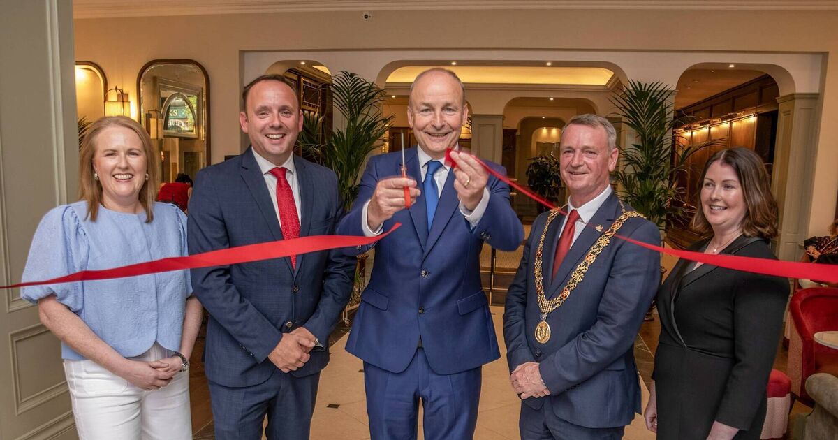 The Metropole Hotel has officially unveiled a major refurbishment of the ground floor and ballrooms. At the unveiling were Carmel Lonergan, director of group operations, Trigon Hotels; Aaron Mansworth, managing director, Trigon Hotels; Taoiseach Micheál Martin; Lord Mayor Cllr Fergal Dennehy; and Louise McNamara, general manager, Metropole Hotel. Pictures: Colm Lougheed