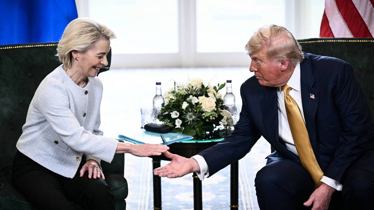 US president Donald Trump and European Commission president Ursula von der Leyen shake hands during a meeting, in Turnberry, Scotland on the third day of his visit to the country, since his second tenure as president began . Picture: Brendan Smiallowski/AFP.