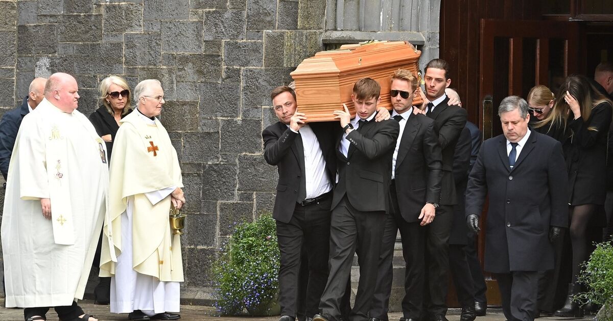 The coffin of Ciaran Keating is carried out of St Patrick's Church in Louisburgh, Co Mayo, after his funeral. Pic: Oliver McVeigh/PA Wire