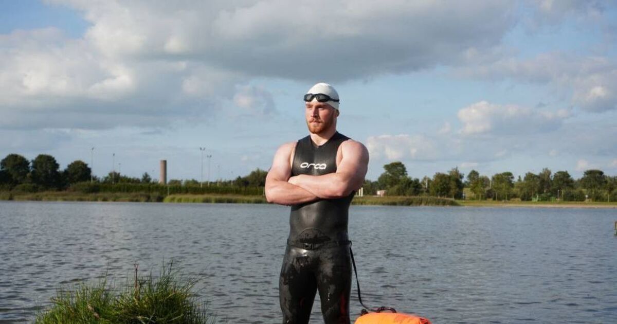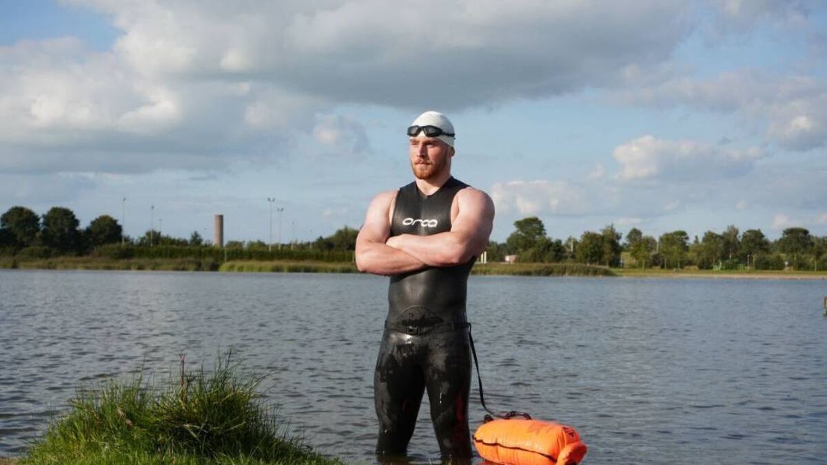 Cork student, Cal Holohan, who undertook an 18-hour swim at Lough Derg last week in aid of Mental Health Ireland.