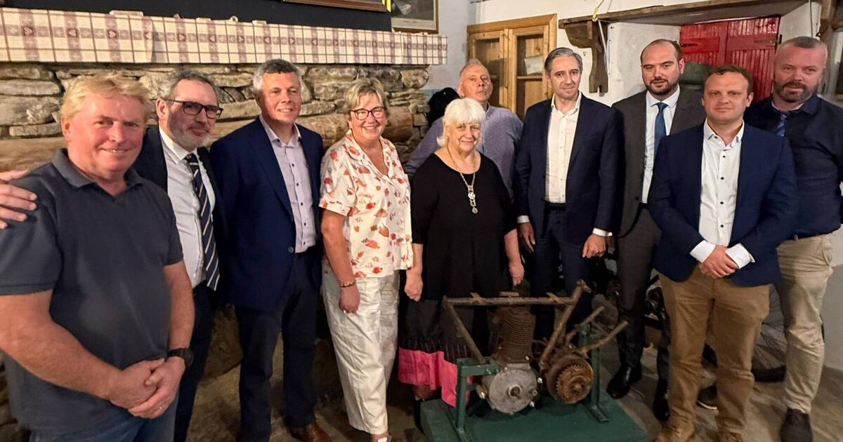 Tánaiste Simon Harris unveils Michael Collins’ motorbike From left to right: Sean Hales, Dominic Smith, Cllr. John Michael Foley, Cllr. Marie O’Sullivan, Fidelma Collins, Tim Crowley, Tanaiste Simon Harris, Senator Noel O’Donovan, Cllr. Shane O’Callaghan, Cllr.Brendan McCarthy