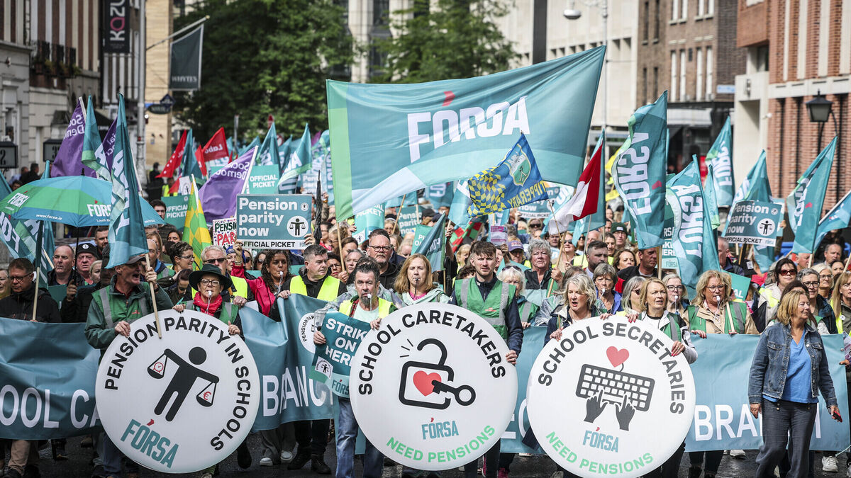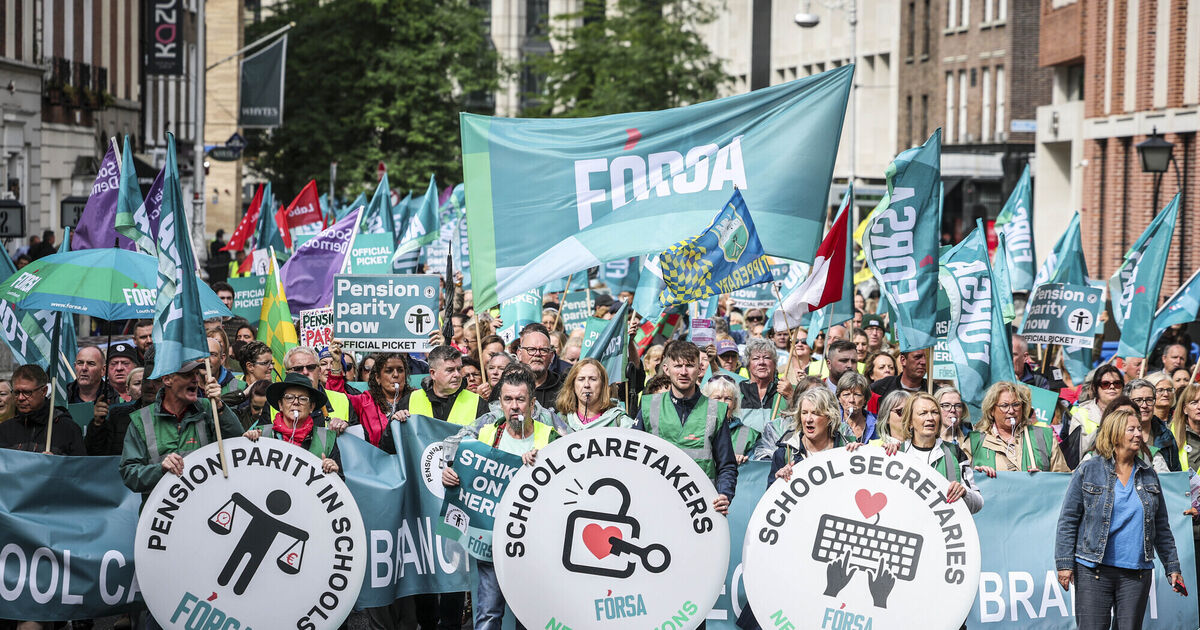 Some 2,600 members of the Fórsa union began an indefinite strike on Thursday, demanding that school staff to be included in the public service pension scheme and other entitlements.