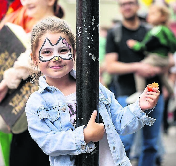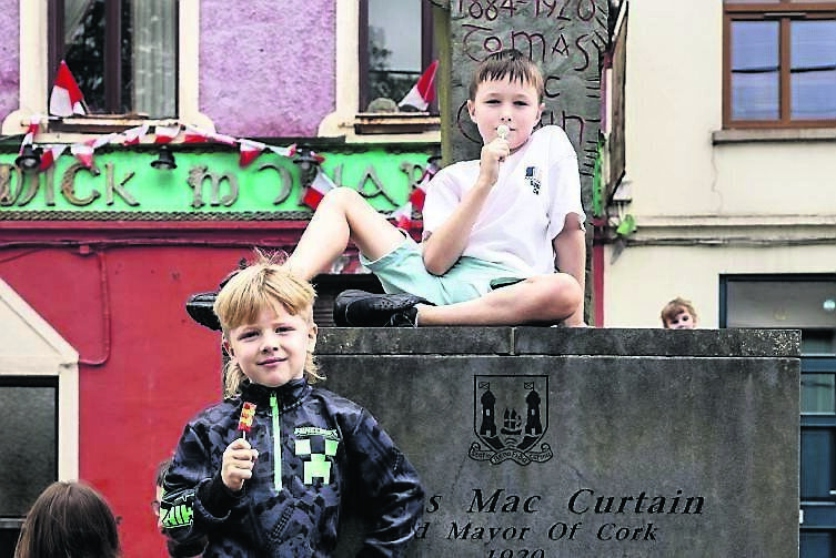 2. Frankie, 6, and Alfie, 8, from Blackpool, find a vantage point to enjoy the festivities and lollipops.