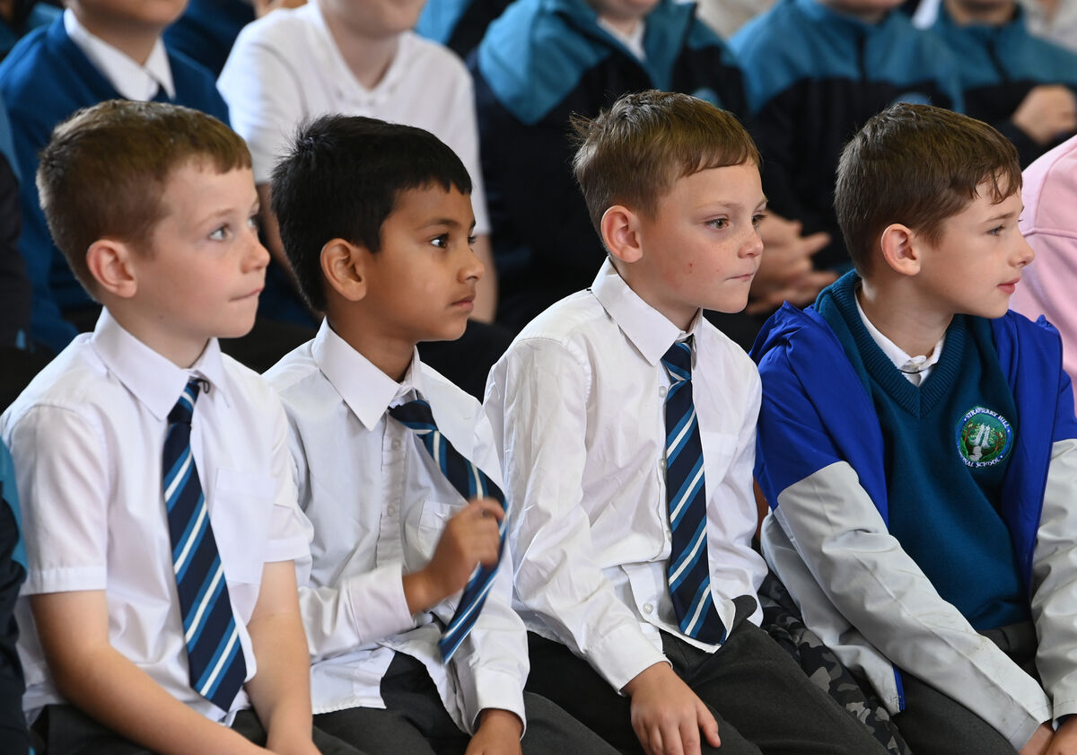2. Boys listen to Lord Mayor Cllr Fergal Dennehy and Lady Mayoress Karen Brennan at Strawberry Hill NS, Cork on Friday 19th September 2025. School visits 2025. Picture Larry Cummins